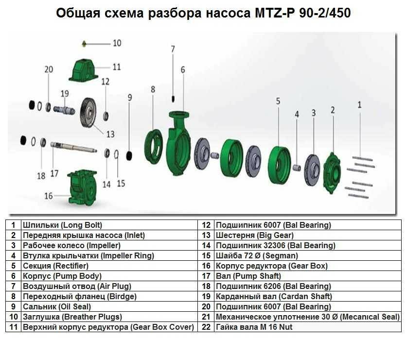 Загальна схема розбору насоса MTZ-P 90-2 / 450: