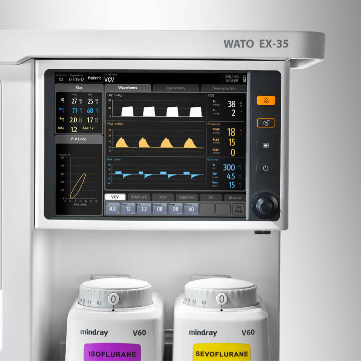 Наркозно-дихальний апарат Mindray Wato EX-35Vet використовується при проведенні загальної анестезії у різних тварин. Є надійним, стабільним приладом з досить простим інтерфейсом. В апараті Wato EX-35Vet спостерігається збалансованість функціональних переваг, гнучкого підстроювання під потреби пацієнта та рентабельності в експлуатації.