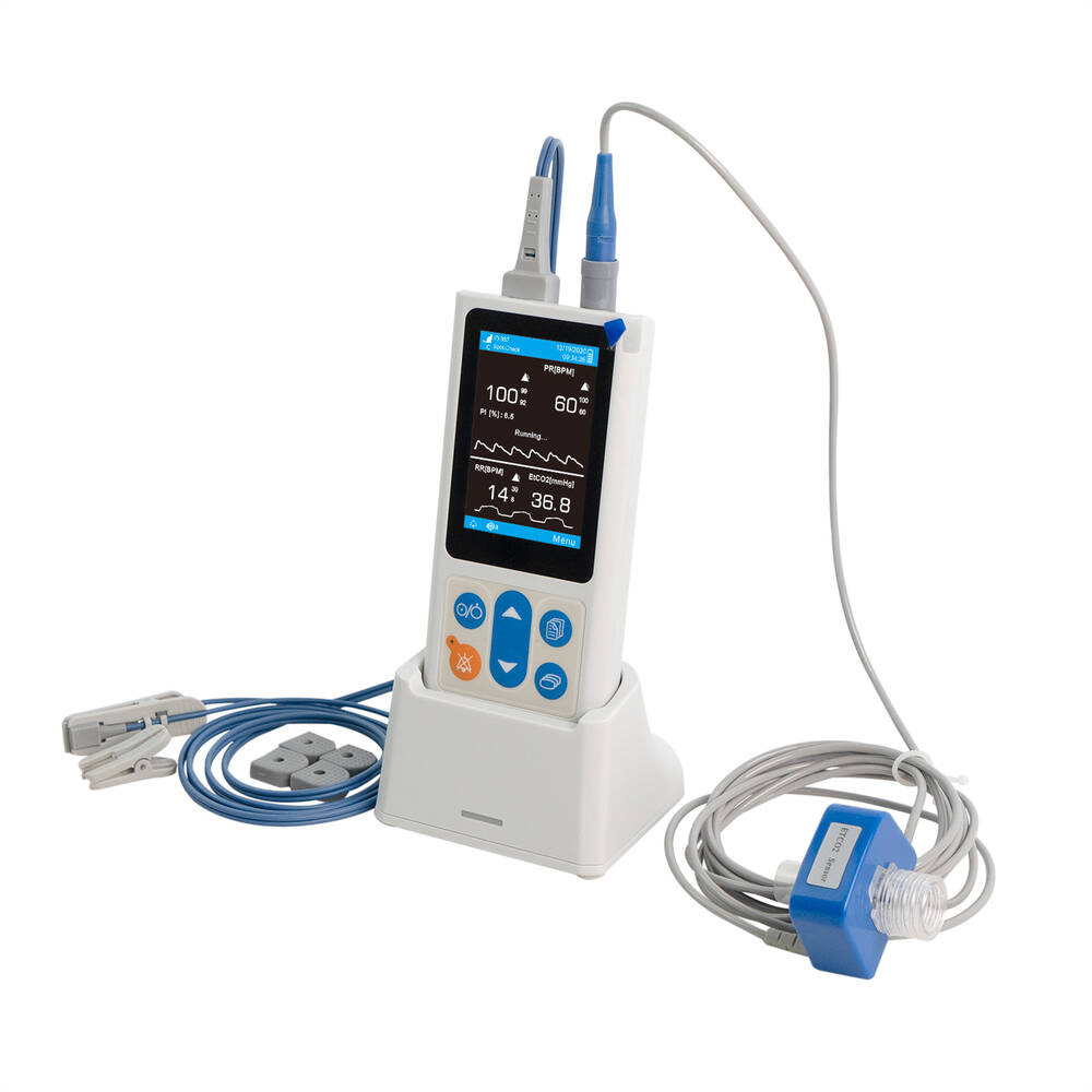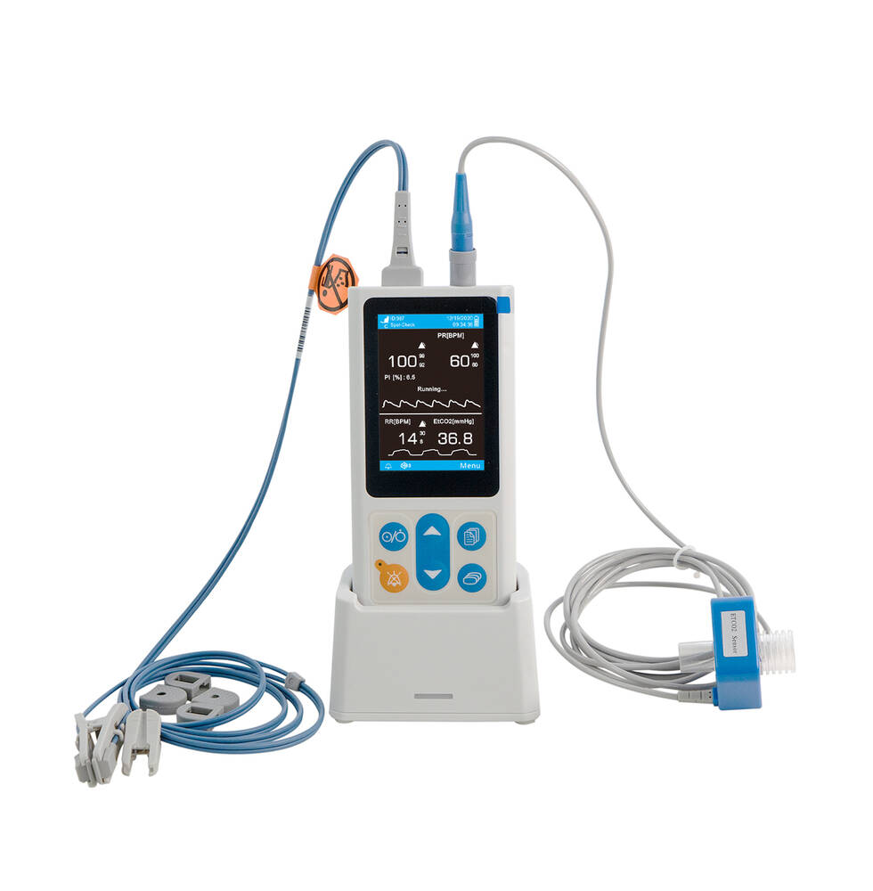 Ветеринарний монітор-капнограф uPM60VC — це багатопараметричний монітор, який вимірює і відображає значення кінцевого рівня вуглекислого газу (ETCO2) і фракційного вдихуваного CO2 (FiCO2) інтубованих та неінтубованих тварин, а також частоту дихання, насичення киснем (SpO2) і частоту пульсу. Він поєднує в собі напівкількісне кінцеве визначення вуглекислого газу з ветеринарною пульсоксиметрією в одному портативному, довговічному і економічному ручному моніторі.
