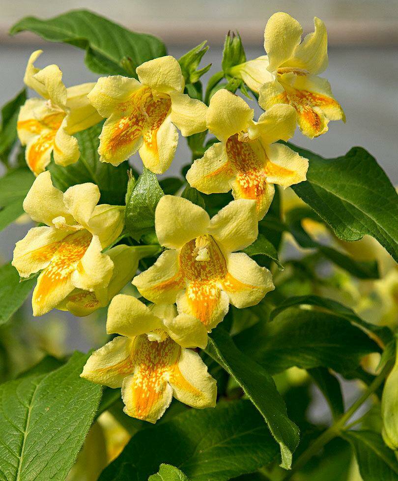 Квітки великі (3-4 см), дзвіночкоподібно-воронкоподібні, жовті або сірчано-жовті, з помаранчевими точками в середині, поодинокі або в малоквіткових (по 2 - 6) суцвіттях.