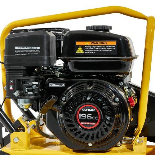 Компактні розміри та маневреність дозволяють використовувати пристрій у важкодоступних місцях, невеликих будівельних майданчиках та приміщеннях. Для зручності транспортування передбачені знімна ручка, вузол для підйому та транспортувальні колеса. Робоча плита 540х450 мм виготовлена з високоміцного металу, що забезпечує довговічність і стійкість до зношування.
