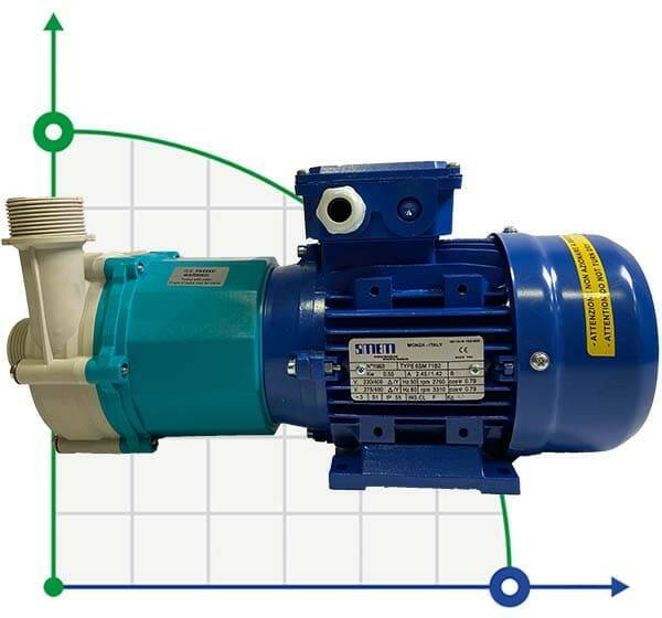 Герметичний насос з магнітною муфтою FLUIMAC FMP-06.10 PP (аналог насосу Argal TMP 06.10) призначений для перекачування хімічно активних середовищ. Конструкція насоса передбачає помірну товщину стінок та розрахована на застосування в умовах середніх чи невеликих навантажень. Насосна частина виготовлена з поліпропілену, манжетне ущільнення Viton (полімер), трифазний двигун 0,55 кВт, різьбове з'єднання, діаметр випускного патрубка 25,5 мм. Продуктивність насоса FMP 06.10 становить від 2 до 12 м3/годину (від 33 до 200 л/хв), а висота подачі до 12 метрів. При цьому робоча точка витрати 6 м3/год (100 л/хв) при натиску 9,7 метрів. Насос розрахований на перекачування рідин різної густини. Базовий двигун 0,55 кВт розрахований на густину до 1,05 кг/дм3.