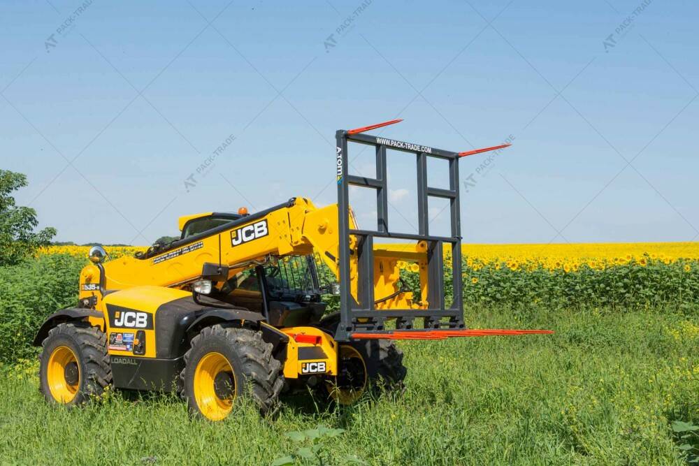 Вила для тюків круглих, квадратних А.ТОМ P6 – високопродуктивний захват для квадратних та круглих тюків з соломою і сіном на телескопічні навантажувачі JCB, Manitou і інші. Це швидкознімне навісне обладнання, яке дозволяє перевантажувати, штабелювати і укладати вантаж безпосередньо під дах.