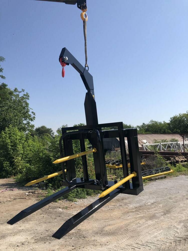 Універсальне навісне обладнання для фронтального навантажувача, яке дозволяє занурювати, переміщувати будь-які упаковані матеріали в тару типу «Big Bag», навантаження палет європейського та американського стандартів, використовується для переміщення та навантаження тюків сіна, соломи тощо. Використання вило-крюка дозволить повністю виключити втрати та пошкодження вантажів у процесі переміщення та навантаження.