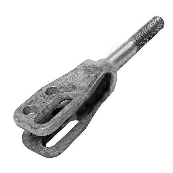 Вилка раскоса навески гидравлического устанавливается на тракторах МТЗ-1025, 1221, под цельную тягу, оригинальная, производства ОАО 'Минский тракторный завод', ОАО 'МТЗ', г. Минск, Республика Беларусь Навесное устройство (механизм навески) служит для присоединения к трактору навесных, полунавесных и прицепных сельскохозяйственных машин, регулировки рабочего положения, подъема в транспортное и опускания в рабочее положение навесных и полунавесных машин. К трем точкам механизма навески — двум шарнирам нижних тяг и шарниру верхней тяги — обычно присоединяется автоматическая сцепка, которая затем сцепляется с замком на машине. Однако в хозяйствах еще находится много сельскохозяйственных машин, не оборудованных замком автосцепки. Такие машины присоединяются непосредственно к шарнирам тяг механизма навески. Силовой цилиндр механизма навески соединен с корпусом заднего моста через кронштейн. Кронштейн закреплен к заднему мосту четырьмя специальными каленными болтами и двумя полыми штифтами. При помощи отгибных пластин болты предохраняются от самоотворачивания. Вилка штока цилиндра соединена с поворотным рычагом, установленным на шлицах вала, вращающегося во втулках кронштейна. На концах вала таким же образом установлены наружные рычаги. При помощи раскосов они соединяются с нижними тягами.