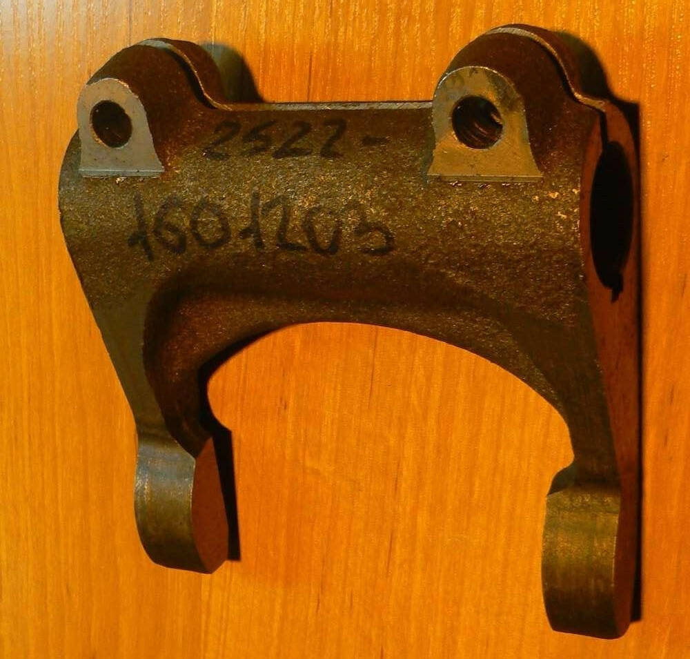 Вилка выключения сцепления устанавливается на тракторах МТЗ-2522, 2822, 3022, оригинальная, производства ОАО 'Минский тракторный завод', ОАО 'МТЗ', г. Минск, Республика Беларусь Сцепление -механизм, работа которого основана на действии силы трения скольжения (фрикционная муфта), предназначен для передачи крутящего момента, плавного переключения передач, гашения крутильных колебаний, кратковременного отсоединения трансмиссии от маховика двигателя. Обычно термин «сцепление» относится к компоненту трансмиссии транспортного средства, предназначенному для подключения или отключения соединения двигателя внутреннего сгорания с коробкой передач. Изобретение сцепления приписывают Карлу Бенцу. Сцепление служит для временного разобщения коленчатого вала двигателя с силовой передачей автомобиля, что необходимо при переключении шестерён в коробке передач и при торможении автомобиля вплоть до полной его остановки. Кроме того, сцепление даёт возможность плавно (без рывков) трогаться с места.
