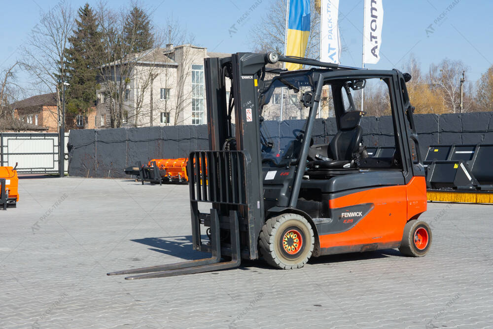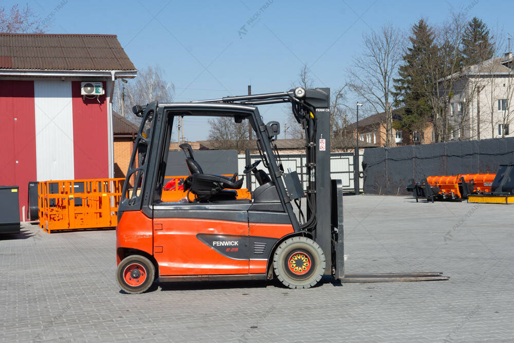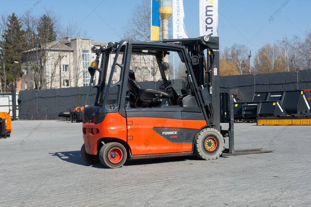 Електричний навантажувач б/в Linde E25L-01, 2016 р/в, з напрацюванням 22483 м/год. Тип щогли Triplex. Вантажопідйомність 2500 кг. Висота підйому 4,7 м. Загальна висота навантажувача 2,2 м. Шини пер.23x9-10, зад.200x50-10. Вила — 1,2 м. Напівкабіна, робоче освітлення.