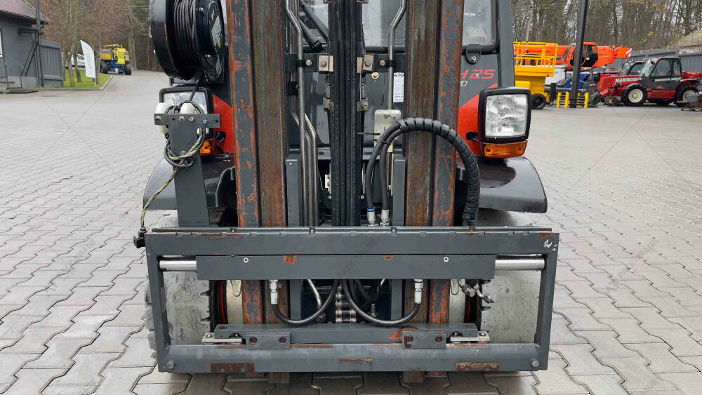 Вилковий навантажувач б/в Linde H25T-02, 2015 р/в, з напрацюванням 9177,8 м/год. Двигун 37 кВт. Тип двигуна Газ. Тип щогли Triplex. Вантажопідйомність 2500 кг. Висота підйому 5 м. Загальна висота навантажувача 2,23 м. Шини пер. 23х9-10, зад. 23х9-10.