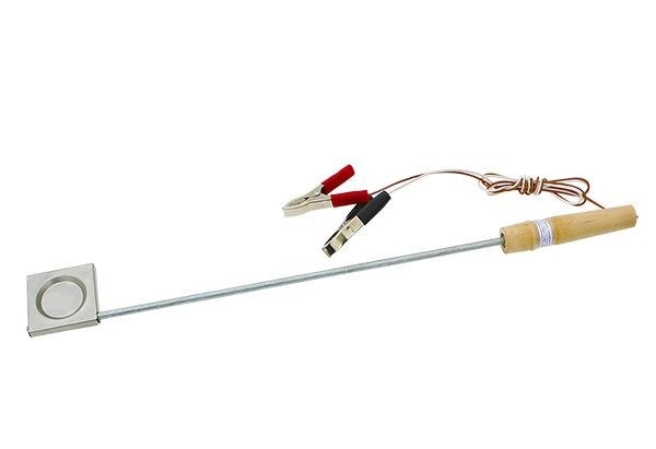 Електричний випарник кислоти - інструмент для обробки бджолиної сім'ї щавлевою кислотою способом обкурювання. , дерев'яної ручки, електропроводу та затискачів.