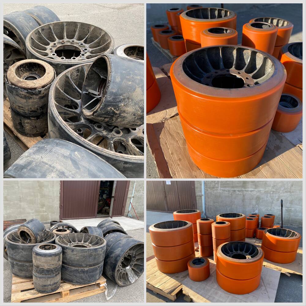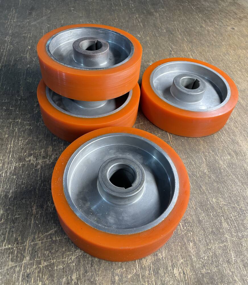 Заміна гумових деталей на поліуретанові, відновлення робочого шару, а також покриття (гумування,футеровка) поліуретаном вузлів і деталей промислового обладнання, в тому числі валів, коліс, роликів, технологічних трубопроводів і т. д..