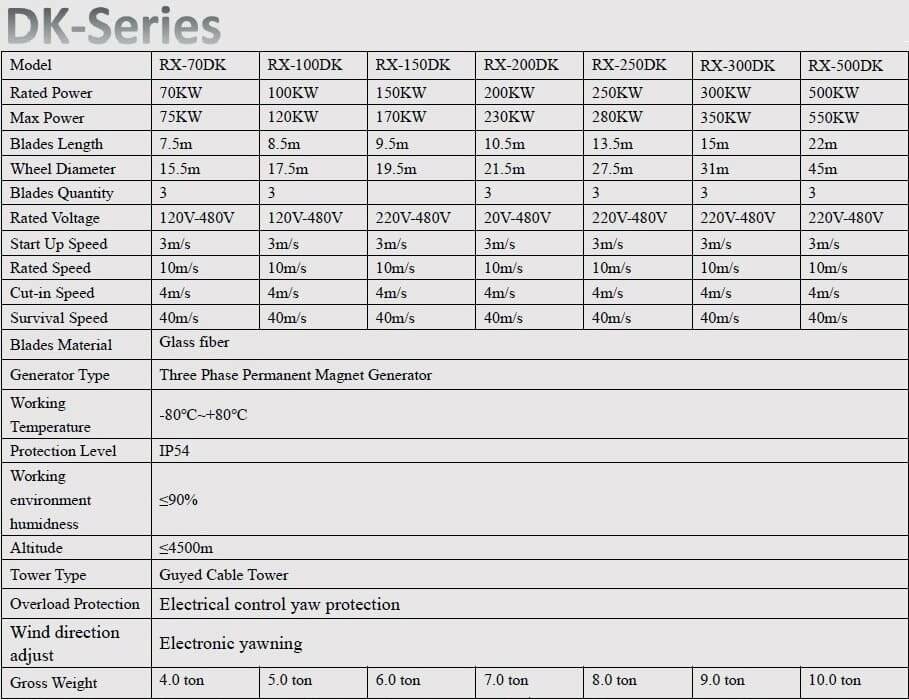 Вітрогенератор DK-Series RX-500DK 500 кВт горизонтальний