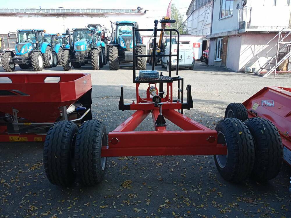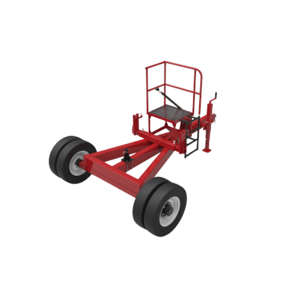 Конструкція візка включає: раму, оглядовий майданчик, сходи, колеса, опорні кронштейни, проміжний шліцевий вал, карданний вал, що з’єднується з ВВП трактора, рукава РВД із швидкороз’ємними муфтами, причіпний пристрій, крила та опорну підставку.