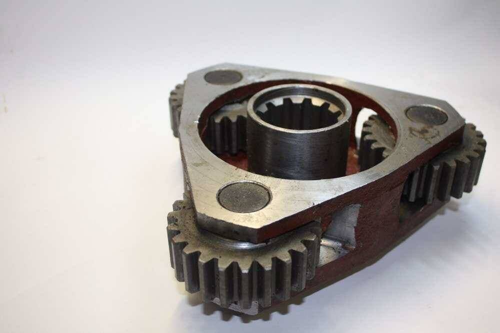 Водило редуктора переднего моста в сборе (с сателлитами) устанавливается на тракторах МТЗ-1221, 1523, 2022, оригинальное, производства ОАО 'Минский тракторный завод', ОАО 'МТЗ', г. Минск, Республика Беларусь Планетарный редуктор- один из классов механических редукторов. Редуктор называется планетарным из-за планетарной передачи, находящейся в редукторе, передающей и преобразующей крутящий момент. Механической основой планетарного редуктора может быть планетарная передача любой формы и состава. Принципиальная возможность работы планетарной передачи в режиме редуктора не зависит от формата распределения функций между тремя её основными звеньями (солнечной шестернёй, водилом с шестернями сателлитами и коронной шестернёй): любое звено может быть выбрано конструкторами как ведущее, и любое как ведомое. Но при этом, наличие у планетарной передачи двух степеней свобод требует снятия одной степени свободы для её работы в качестве редуктора, эта задача решается посредством блокировки третьего звена на корпус редуктора, а само звено получает название «опорное звено».