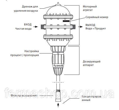 Водный дозатор для смешивания жидкостей DOSATAC, дозировка 1-5%