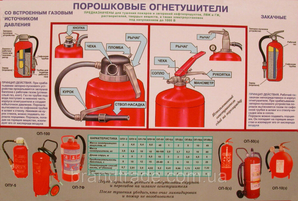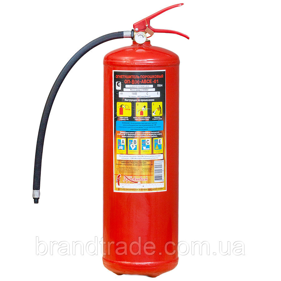 Порошковый огнетушитель ОП-8 предназначен для тушения возгораний классов А, В, С, и не рекомендуется для тушения возгораний класса D. Преимуществом порошкового огнетушителя является то, что он справится с большим количеством классов возгораний, в отличие от углекислотного огнетушителя, и порошковый огнетушитель является более эффективным.