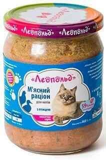 Вологий корм Леопольд м'ясний раціон з птицею консерва для котів 460 г