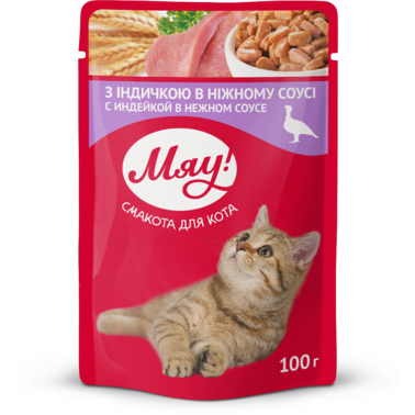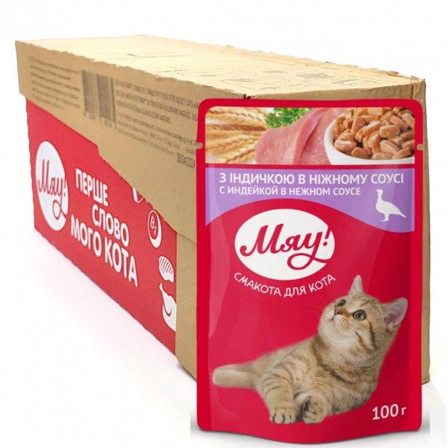 Вологий корм Мяу! для дорослих кішок "З індичкою в ніжному соусі" 100 г (блок 24 шт.)