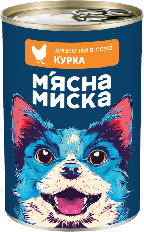 Вологий корм в банці для дорослих собак М'ясна миска шматочки в соусі з куркою, 415 г