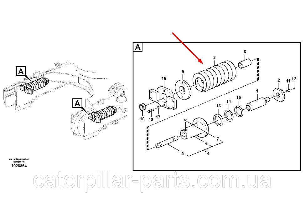 14562921 Натягувач гусениці для EC140 Volvo. Купити запчастини до спецтехніки Volvo в Києві безпосередньо з нашого складу. Всі запчастини до мостів і редукторів ми поставляємо безпосередньо від виробника. Ремонт мостів, трансмісії та двигунів проводить наш сервісний центр (Київ, Україна).