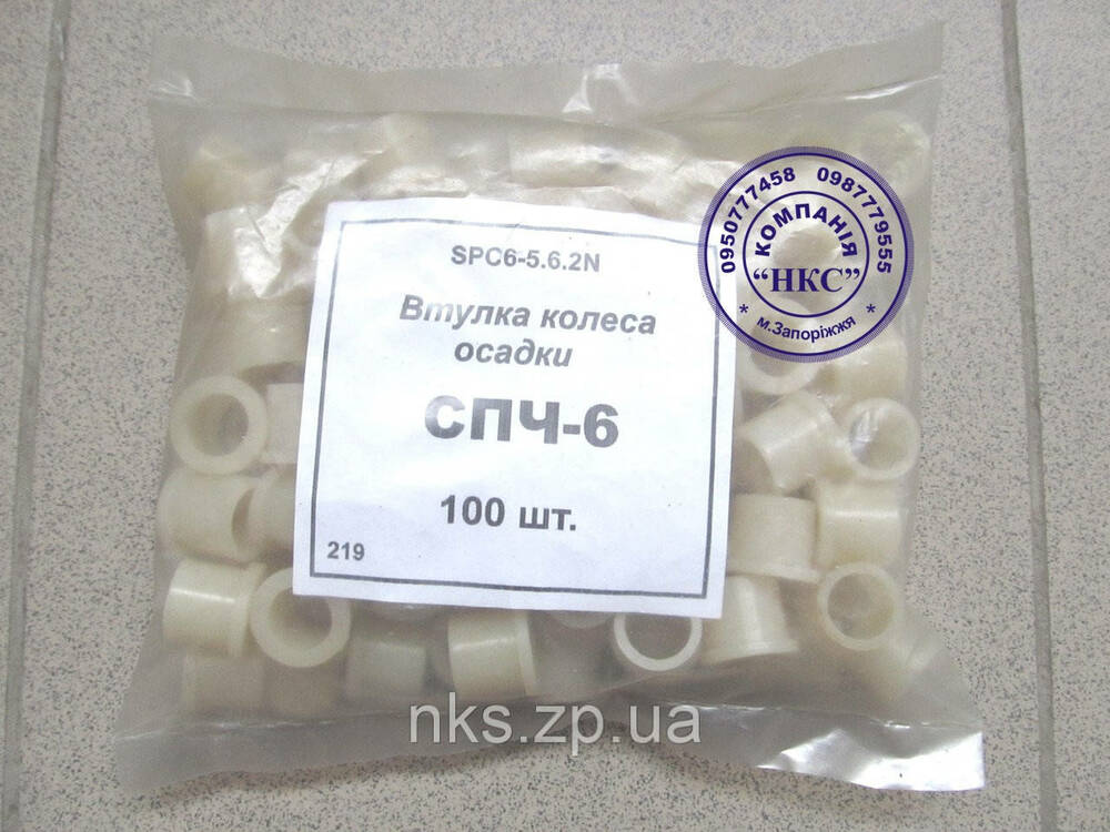 Втулка колеса опади СПЧ-6 - призначена для обмеження прямого контакту «підшипника осі опади СПЧ-6» і «осі колеса опади СПЧ-6». « Втулка колеса опади СПЧ-6» встановлюється в корпус (підшипник осі опади СПЧ-6), а сам підшипник кріпиться до « Кронштейну секціі СПЧ-6». Завдяки цій втулиці можна уникнути передчасного зносу підшипника і осі колеса опади СПЧ-6, оскільки між вісью, яка виготовлена з сталі і чугуним підшипником осі знаходиться пластикова втулка, яка приймає все навантаження на себе. Своєчасна заміна втулок полегшить тривале використання дорогих частин, а саме «підшипника осі опади СПЧ-6» і «осі колеса опади СПЧ-6». На одній осі встановлено дві таких втулки. Прості й корисні матеріали, які використовуються для виготовлення втулок, допомагають їм довго працювати. Завжди наявнсті на складі Компанії "НКС", при замовленні діють знижки. Замовлення можна оформити на сайті компанії Або по телефону у менеджера, телефони вказані в компанії.