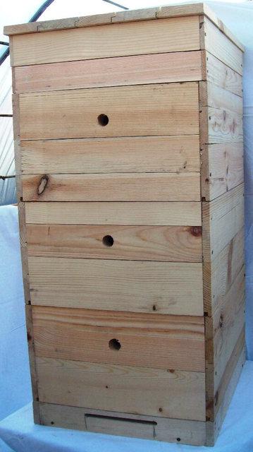 Всі деталі вулика фальцеві та взаємозамінні. Товщина стінок корпусів та днища 35 мм, даху та підкришника – 20 мм. Вулиця виготовлена з хвойної деревини високої якості, гнилі та хворі сучки обрізаються або висвердлюються.