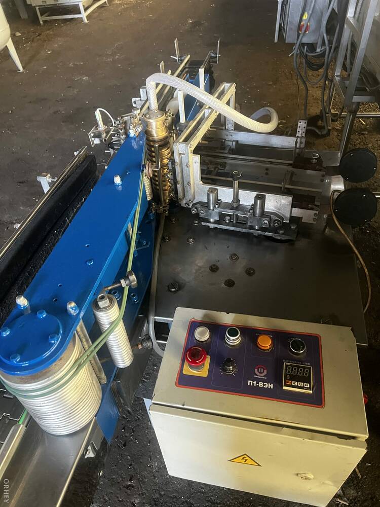 Машина оснащена механічною системою подачі тари та етикетки, а також вузлом нанесення клею з регулюванням подачі.