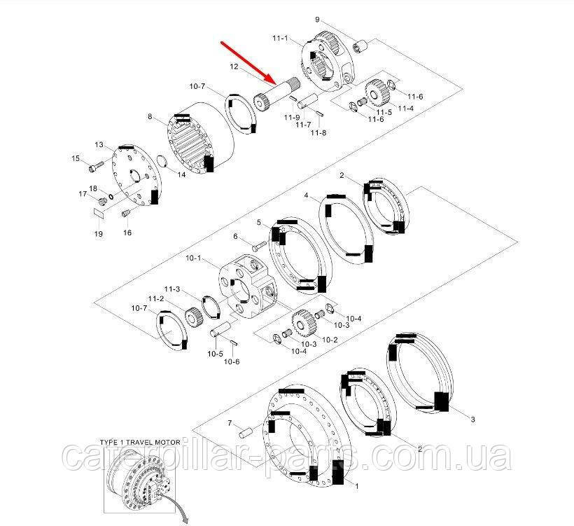 XKAQ-00402 Вал редуктора Hyundai. Купити запчастини для спецтехніки можна у Києві безпосередньо з нашого складу. Всі запчастини в мости та КПП ми поставляємо безпосередньо від виробника. Ремонт мостів та трансмісії проводить наш сервісний центр з ремонту спецтехніки та двигунів (Київ, Україна).XKAQ-00402 Вал редуктора Hyundai R210LC-7