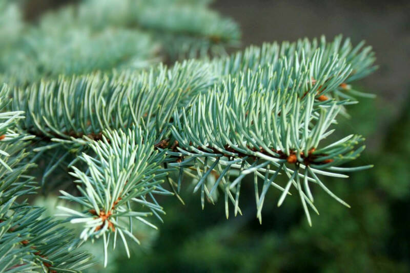 Хвоя: Блакитна зі сталевим відливом, жорстка, дуже колюча. При надлишкових дозах азотних добрив сизе забарвлення може зникати в зв'язку з інтенсивним зростанням пагонів і недостатньо товстим шаром воскового нальоту, від якого і залежить інтенсивність блакитного кольору.