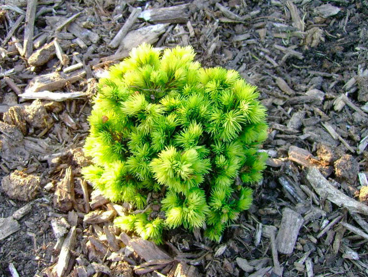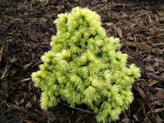 Хвоя: дуже ніжна, м'яка, приємна на дотик. Головне - це колір хвої. Молода хвоя дуже насичена, золотиста, але до літа починає зеленіти.
