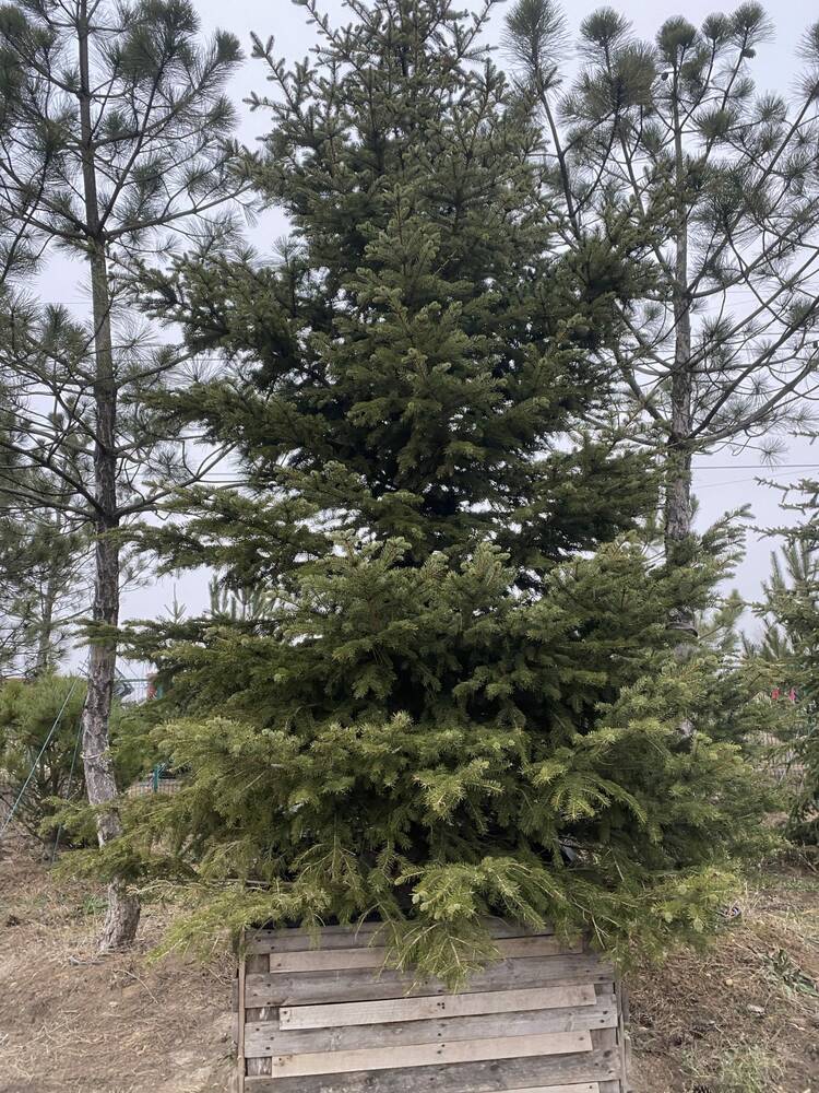 Габітус: крона симетрична, пірамідальної чи конусовидної форми. Гілки розташовуються правильними щільними ярусами, горизонтально або під невеликим кутом.