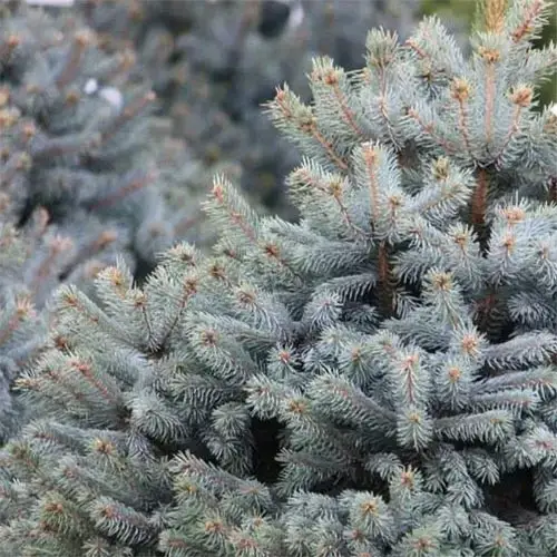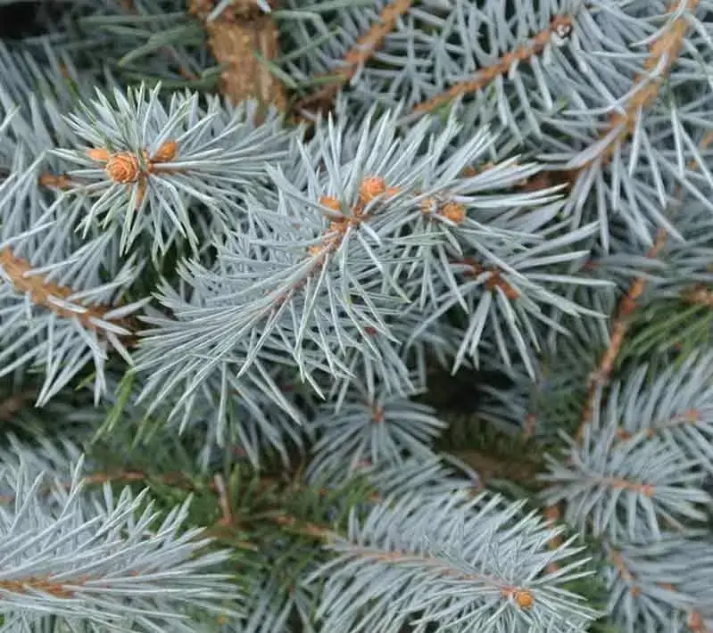 Хвоя: Голки жорсткі, довжиною 1,5-3 см, в поперечному перерізі ромбовидні, гострі, сизо-блакитного кольору з переходом в яскраво-блакитний (багато що залежить від якості ґрунту і освітленості).