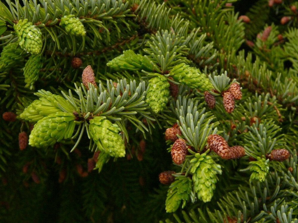 Шишки Picea omorika дозрівають у серпні.