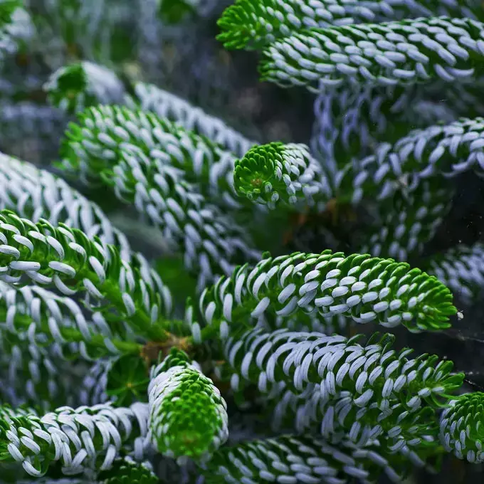 Колір хвої: зверху темно-зелена, блискуча, знизу з 2 широкими світлими смужками.