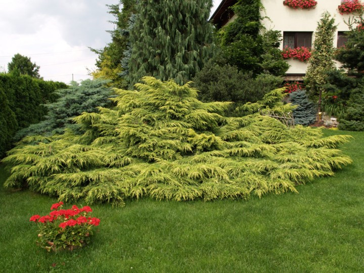 Хвоя: злегка колюча, луската, яскравою золотисто-жовтого забарвлення, що надає чагарнику дуже привабливий вигляд.