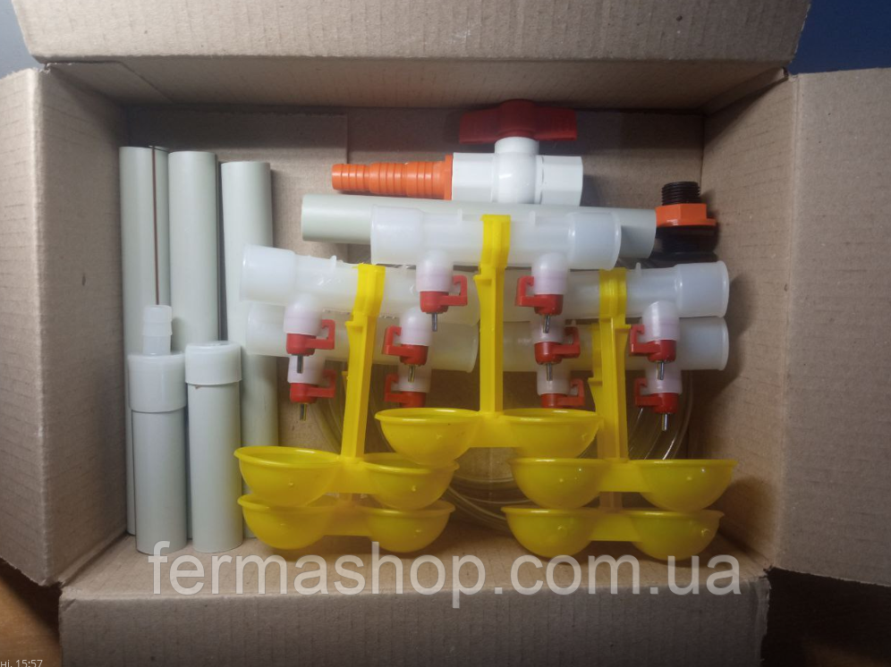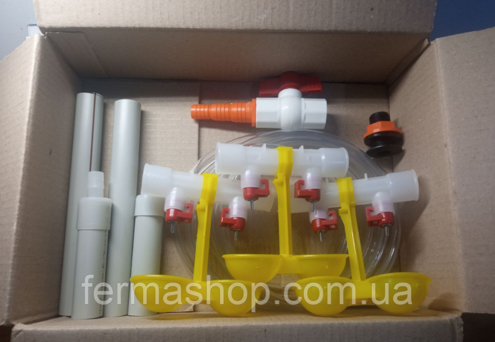 Также Вы можете приобрести поилки двойные на круглую трубу 25 мм, а также готовые наборы-конструкторы, которые включают в себя всё, что необходимо, чтобы собрать систему поения!