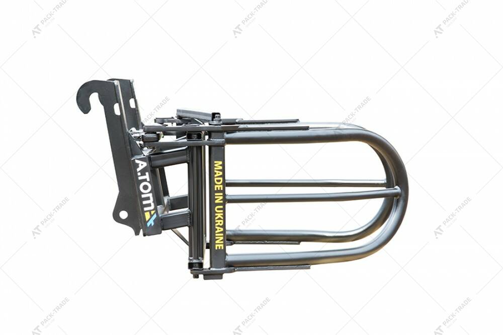 Захват для круглих тюків, рулонів - А.ТОМ 800 призначений для підйому, транспортування та штабелювання рулонів з сіном та соломою. Він забезпечує економічність та ефективність виконуваних робіт. За допомогою такого навісного обладнання ТМ «А.ТОМ» ви зможете легко підняти, транспортувати та укладати важкі круглі тюки, не пошкоджуючи їх. Легко встановлюються як на телескопічні, так і фронтальні навантажувачі. Захват А.ТОМ складається з високоміцної рами і трубчастого профілю з вигнутими лапами, що повторюють форму круглих тюків. Відсутність гострих кутів і плавні вигини на конструкції не пошкоджують пакувальну плівку і дбайливо беруть тюк. Встановлюється на фронтальні і телескопічні навантажувачі JCB. Вантажопідйомність – 800 кг. Рівномірне стиснення лап забезпечує рівномірну фіксацію рулонів під час транспортування.