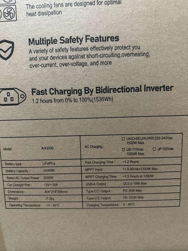 Кількість виходів: 2 розетки на 220В, 2 USB-A, 2 USB-С, 1 прикурвач, 1 для сонячної панелі.