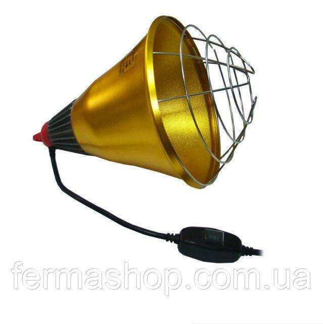 Закручиваем лампу в защитный плафон, подвешиваем плафон в нужном месте и по мере роста птицы или животных регулируем по высоте.