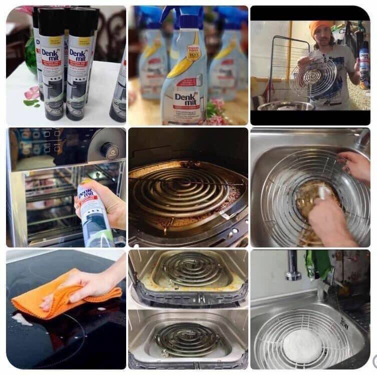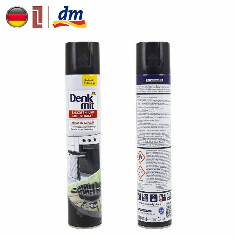 Засіб для чищення духовок і гриля Denkmit (піна-спрей), 500 мл. Надійно очищає духовки, решітки гриля, каструлі та сковорідки своєю активною піною. Потужна активна формула видаляє жир і розчиняє навіть стійкі нальоти та пригорілі залишки - для ідеальної чистоти. Піна полегшує прибирання складних забруднень, краще працює коли поверхні підігріті.