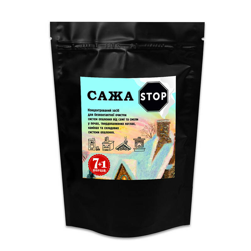 Увага! Не використовувати засіб до готування їжі у печі, каміні. У випадку сильного забруднення димоходу, використання САЖА STOP може викликати займання смол у димоході!