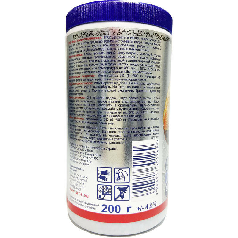 Посипати рівномірно 0.4 - 0.8 г/м² у місцях, де присутні слимаки. Не посипати культурні рослини. Ефективне застосування у другій половині дня чи увечері.