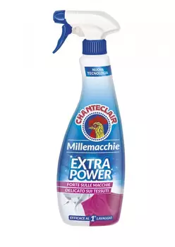 Chanteclair Millemacchie Pretreatant створена за новою формулою, яка ефективна від найпоширеніших плям після першого застосування. Його технологія ExtraPower діє від низьких температур і проникає у волокна тканин, ефективно видаляючи всі сліди бруду з тканин, зберігаючи їх колір. Також підходить для білих.