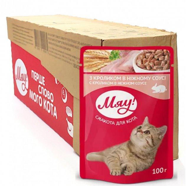 Збалансирований вологий корм Мяу! для дорослих котів "З кроликом в ніжному соусі" 100 г (блок 24 шт)