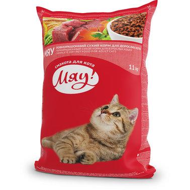 Сухий корм для кішок «Мяу!» – це збалансоване щоденне харчування дорослих котів. Корм збагачений усіма необхідними корисними речовинами: білками, жирами, вуглеводами, вітамінами та мінералами.