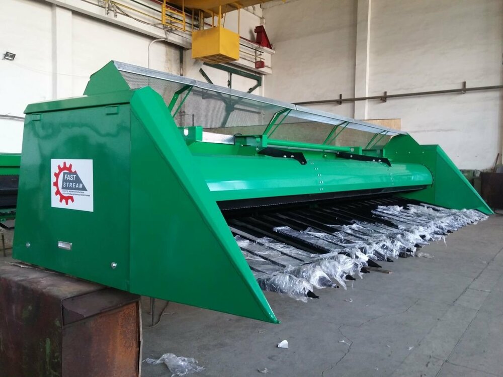 Жатка имеет простую конструкцию, она простая в обслуживании и эксплуатации. Оборудование можно использовать со всеми типами комбайнов. Жатка подбирает даже полеглые стебли растений.