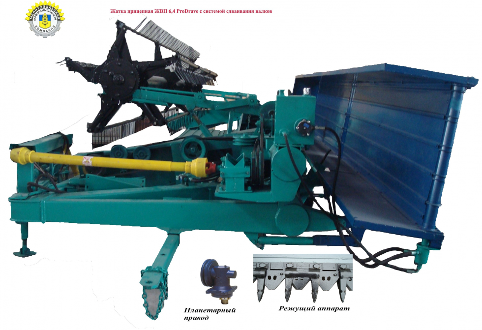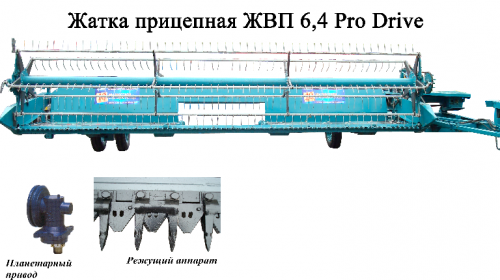 Жатка ЖВП-6,4 оборудована ременно-планчатым транспортером, резальным аппаратом повышенной скорости резания, планетарным приводом режущего аппарата ProDrive, автоматом-отсекателем, стабилизатором стойкости хода, имеет устройство быстрого и удобного перевода в рабочее или транспортное положение и гидравлический домкрат.