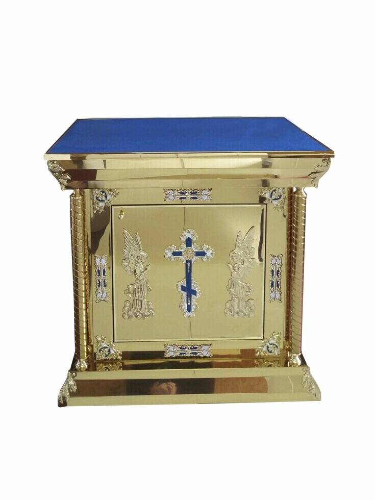 Майстерня «Фавор» виготовляє та реалізує жертовники для храмів різних форм, розмірів та стилів. У нашому магазині ви можете підібрати жертовник з колонами, карбуванням, литими елементами, кіотом, куполами, іконою. Для облаштування нової церкви рекомендуємо купувати одночасно і церковні престоли, виготовлені та оформлені подібним чином.