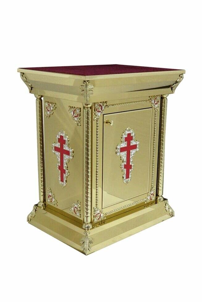 Майстерня «Фавор» виготовляє та реалізує жертовники для храмів різних форм, розмірів та стилів. У нашому магазині ви можете підібрати жертовник з колонами, карбуванням, литими елементами, кіотом, куполами, іконою. Для облаштування нової церкви рекомендуємо купувати одночасно і церковні престоли, виготовлені та оформлені подібним чином.