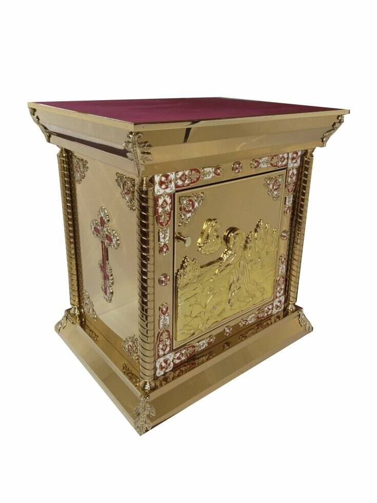 Майстерня «Фавор» виготовляє та реалізує жертовники храмів різних форм, розмірів та стилів. У нашому магазині ви можете підібрати жертовник з колонами, карбуванням, литими елементами, кіотом, куполами, іконою. Для облаштування нової церкви рекомендуємо купувати одночасно і церковні престоли, виготовлені та оформлені подібним чином.