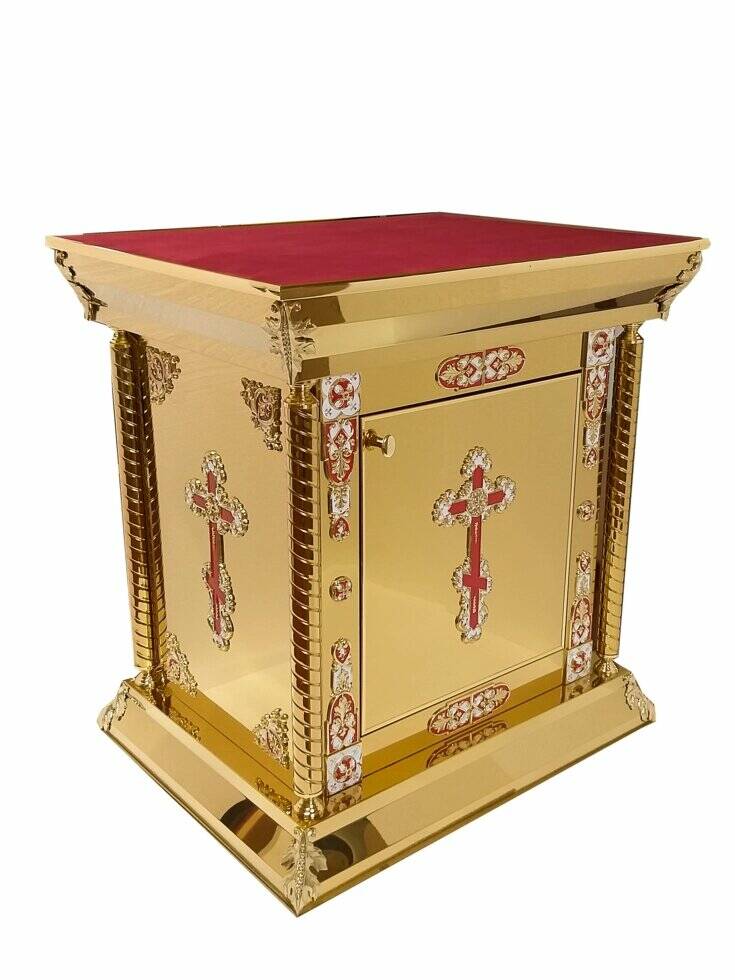 Майстерня «Фавор» виготовляє та реалізує жертовники для храмів різних форм, розмірів та стилів. У нашому магазині ви можете підібрати жертовник з колонами, карбуванням, литими елементами, кіотом, куполами, іконою. Для облаштування нової церкви рекомендуємо купувати одночасно і церковні престоли, виготовлені та оформлені подібним чином.